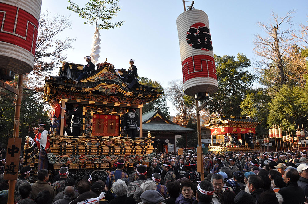 国指定重要有形民俗文化財「秩父祭屋台」は12月3日の秩父神社の例大祭(秩父夜祭)で曳き廻される2基の笠鉾・4基の屋台です。